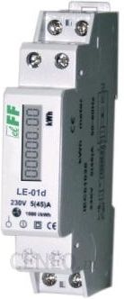 ZgodnośćMID 2004/22/ECEN 50470-1/3 PrzeznaczenieLE-01d jest statycznym (elektronicznym) wzorcowanym licznikiem energii elektrycznej prądu przemiennego jednofazowego w układzie bezpośrednim. DziałanieSpecjalny układ elektroniczny pod wpływem przepływającego prądu i przyłożonego napięcia generuje impulsy w ilości proporcjonalnej do pobieranej energii elektrycznej. Pobór energii sygnalizowany jest miganiem LED. Liczba impulsów jest przeliczana na energię pobraną, a jej wartość wskazywana jest przez segmentowy wyświetlacz LCD. Cyfry po przecinku oznaczają części setne (.01 kWh =10Wh). Uwaga!Licznik posiada wyjście impulsowe SO+ – SO-. Pozwala to na podłączenie innego urządzenia impulsowego sczytującego (SO) generowane impulsy przez licznik. Do poprawnej pracy licznika nie jest wymagane podłączenie dodatkowego urządzenia.Licznik posiada możliwość plombowania osłon zacisków wejściowych i wyjściowych uniemożliwiające zrobienie obejścia licznika. Dane techniczne napięcie odniesienia 230V AC 50Hz prąd bazowy* 0,25÷5A prąd maksymalny* 50A prąd minimalny* 0,02A klasa dokładności B zgodność Dyrektywa 2004/22/EC pobór własny licznika <8VA; <0,4W zakres wskazań 0÷99999,99kWh stała licznika (1Wh/imp) 1000imp/kWh sygnalizacja sczytywania kWh LED czerwona wyjście impulsowe SO+ SO- otwarty kolektor napięcie podłączenia SO+ SO- <12÷27V DC prąd podłączenia SO+ SO- <27mA stała SO+ SO- (1Wh/imp) 1000imp/kWh czas impulsu SO+ SO- 90ms dł. przewodu SO+ SO- <20m temperatura pracy -25÷55°C przyłącze zaciski śrubowe 6mm² obudowa tworzywo PC+ABS wymiary 1 moduł (18mm) montaż na szynie TH-35mm stopień ochrony IP20 *) Prąd bazowy – określa wartość prądu, przy którym procentowy błąd pomiarowy jest bliski zeru. Jeśli prąd płynący przez licznik jest większy od bazowego, wówczas błąd pomiarowy ma znak ujemny, co działa na korzyść płatnika za energię elektryczną. Natomiast, jeśli prąd płynący przez licznik jest mniejszy od bazowego, wówczas procentowy błąd pomiarowy ma znak dodatni, co działa na niekorzyść płatnika ze energię elektryczną. Powyższe stwierdzenia wynikają z charakterystyki metrologicznej (procentowy błąd pomiarowy w funkcji prądu), dołączanej do instrukcji obsługi licznika energii elektrycznej. Oczywistym jest, że licznik mierzy poprawnie energię elektryczną z dokładnością klasy licznika w całym zakresie pomiarowym.Prąd maksymalny – to maksymalny prąd, jakim możemy stale obciążać licznik energii elektrycznej.Prąd minimalny – najniższa wartość pradu obciązenia, którą licznik wykrywa i rejestruje.Znakowanie na urządzeniu: 0,25÷5(50)A – pozycja 1 (przed nawiasem): prąd bazowy0,25÷5A; pozycja 2 (w nawiasie): prąd maksymalny 50A.