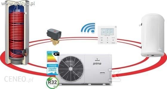 Pompy Ciepła Prima to:3 funkcje w 1 urządzeniu – ogrzewanie i chłodzenie budynku, grzanie wody użytkowej COP = 5,6 (Prima 8GT – A10W35)Praca do -25°CTemperatura na wyjściu z pompy ciepła do 65°CEkologiczny czynnik chłodniczy – R322 tryby pracy cichejModulowana moc grzewcza – podwójna rotacyjna sprężarka inwerterowa (twin rotary)
