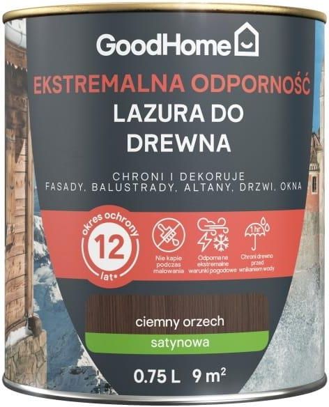 Lazura GoodHome 12 lat orzech sprawdzi się do zabezpieczenia altany, ogrodzenia lub mebli. Dzięki produktowi drewno zyska odporność na czynniki atmosferyczne. Stanie się odporne na działanie wody, niskiej i wysokiej temperatury oraz słońca. Dzięki produktowi nadasz również przedmiotom ciemniejszy kolor oraz satynowe wykończenie.wysoka odpornośćchroni i dekorujeodporna na warunki atmosferycznełatwa w aplikacjiParametry logistyczneDługość opakowania: 12.1 cmWysokość opakowania: 10.2 cmSzerokość opakowania: 10.2 cmWaga brutto: 0.88 kgPojemność: 0,75 lParametry techniczne i użytkoweObszary zastosowania: na zewnątrz budynkówWydajność: 12 m2/lMaksymalna wydajność z opakowania: 9 m2Metoda aplikacji: pędzel, wałekIlość warstw: 2Czas schnięcia: 12 hCzas ochrony: 12 latDopuszczalne wartości maksymalnej zawartości LZO: 130 g/lZawartość LZO w produkcie: 15 g/lParametry indywidualneEAN: 5059340320311Marka: GoodHomeGwarancja: 12 latInformacje dodatkowe: aby przedłużyć ochronę drewna, należy co 2 lata nakładać dodatkową warstwę preparatuParametry fizyczne i wizualneKolor producenta: orzechSkala połysku: satyna