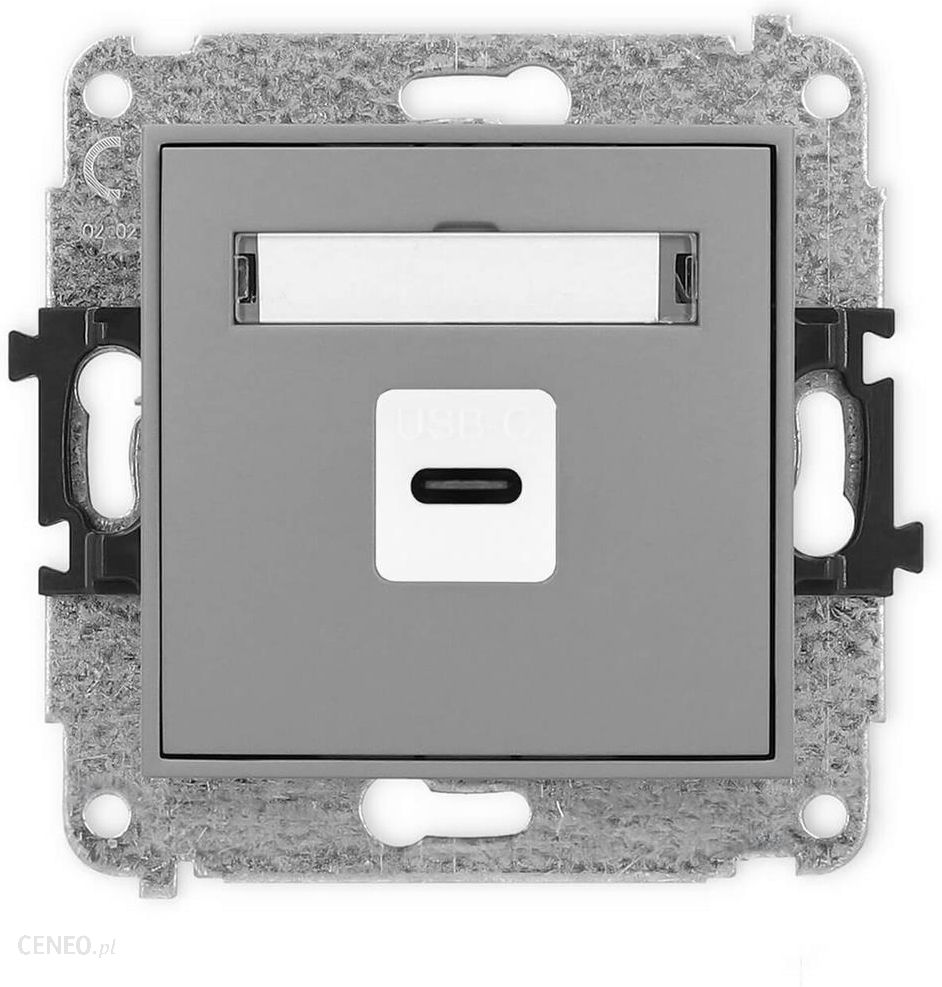 Gniazdo pojedyncze USB-C w kolorze szary mat z serii MINI, marki Karlik.Gniazdo USB-C pośredniczy w przesyłaniu danych, można je wykorzystać do podłączenia wielu różnych urządzeń np. kamer wideo, aparatów fotograficznych, telefonów komórkowych, skanerów itp. Do kompletu wymagana ramka. Można stosować do systemów ramkowych wielokrotnych..Gniazdo nie jest ładowarką USB. Gniazdo USB pozwala tylko na przesyłanie danych pomiędzy urządzeniami.