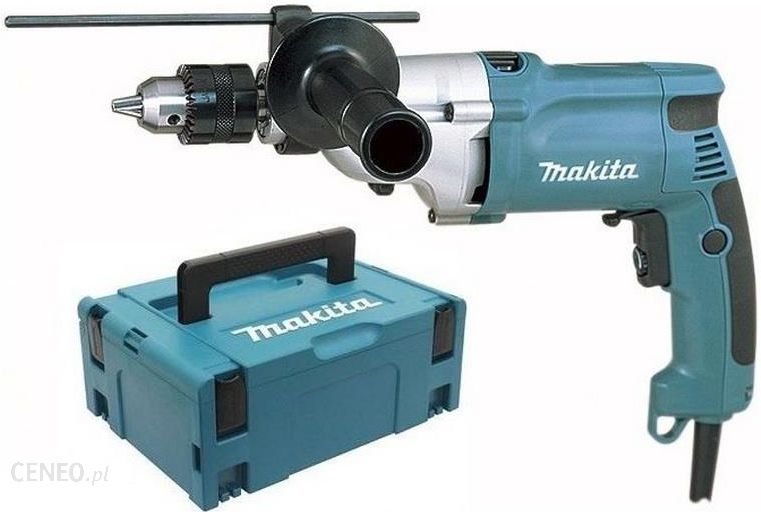 MAKITA Wiertarka udarowa 2-biegowa 720W, HP2050J Charakterystyka produktu: – Nowa wzmocniona przekładnia zębata. – Uchwyt wiertarski na kluczyk. – Sprzęgło przeciążeniowe chroni użytkownika i przekładnię w przypadku zablokowania wiertła. – Duża wydajność wiercenia przy małych drganiach. – Mocna, smukła obudowa przekładni z odlewanego pod ciśnieniem aluminium. – Duży wyłącznik z pokrętłem regulacji prędkości obrotowej i przełącznikiem obrotu w prawo/lewo. Dane techniczne: – Moc znamionowa – 720 W – Prędkość obrotowa na biegu jałowym – 0-1200/0-2900 obr/min – Częstotliwość udarów na biegu jałowym – 0-24000/0-58000 ud/min – Zakres mocowania – 1.5-13 mm – Maksymalna zdolność wiercenia w betonie – 20/13 mm – Maksymalna zdolność wiercenia w drewnie – 40/25 mm – Maksymalna zdolność wiercenia w stali – 13/8 mm – Długość – 360 mm – Szerokość – 70 mm – Wysokość – 220 mm – Waga – 2.5 kg Wyposażenie: – Walizka systemowa MAKPAC – Uchwyt boczny – Uchwyt wiertarski na kluczyk 13 mm – Kluczyk do uchwytu wiertarskiego – Ogranicznik głębokości Producent: MAKITA Kod produktu: HP2050J