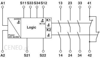 Przekaźnik bezpieczeństwa do nadzoru zatrzymania awaryjnego i drzwi bezpieczeństwa do SIL 3 lub kat. 4, PL e według EN ISO 13849, praca jedno- lub dwukanałowa, 3 tory zwolnienia blokady, wejściowe napięcie znamionowe 24 V AC/DC, wtykowe zaciski śrubowe