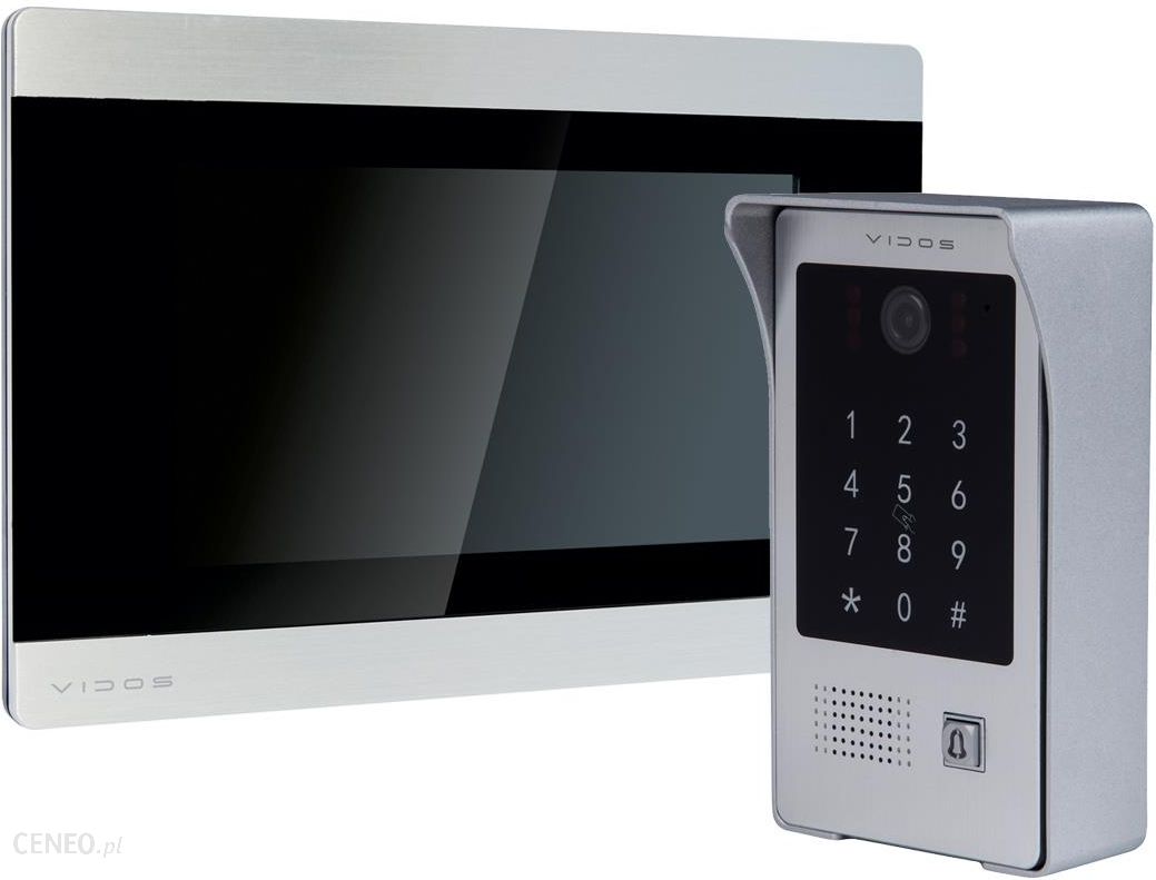 Vidos Zestaw Wideodomofonu Natynkowego Z Czytnikiem Rfid I Szyfratorem (S20DAM903FH)Zalety produktu :Jednoabonentowa stacja bramowaRozdzielczość kamery 800TVL / 1,3 Mpix – regulowana przyciskiem na tylnej obudowieObiektyw 1,8mm / kąt widzenia 110°Podświetlenie nocne – LED IR ( podczerwień )Wbudowany zamek szyfrowy do otwierania wejścia – max 200 kodówWbudowany czytnik zbliżeniowy w standardzie UNIQUE 125kHz – max 200 tagóPodświetlana klawiatura i przycisk dzwonkaZabzpieczenie przed nieautoryzowanym użyciemObudowa : szczotkowane aluminium / ABSZasilanie DC12-15VZakres temperatur pracy : -25°C ~ +50°CPobór mocy: czuwanie – 0,40W / praca – 0,95WKlasa szczelności – IP65W zestawie 2 breloki zbliżenioweProgramowanie – z klawiaturyWymiary: 84x150x36Wymiary puszki : 78x142x31
