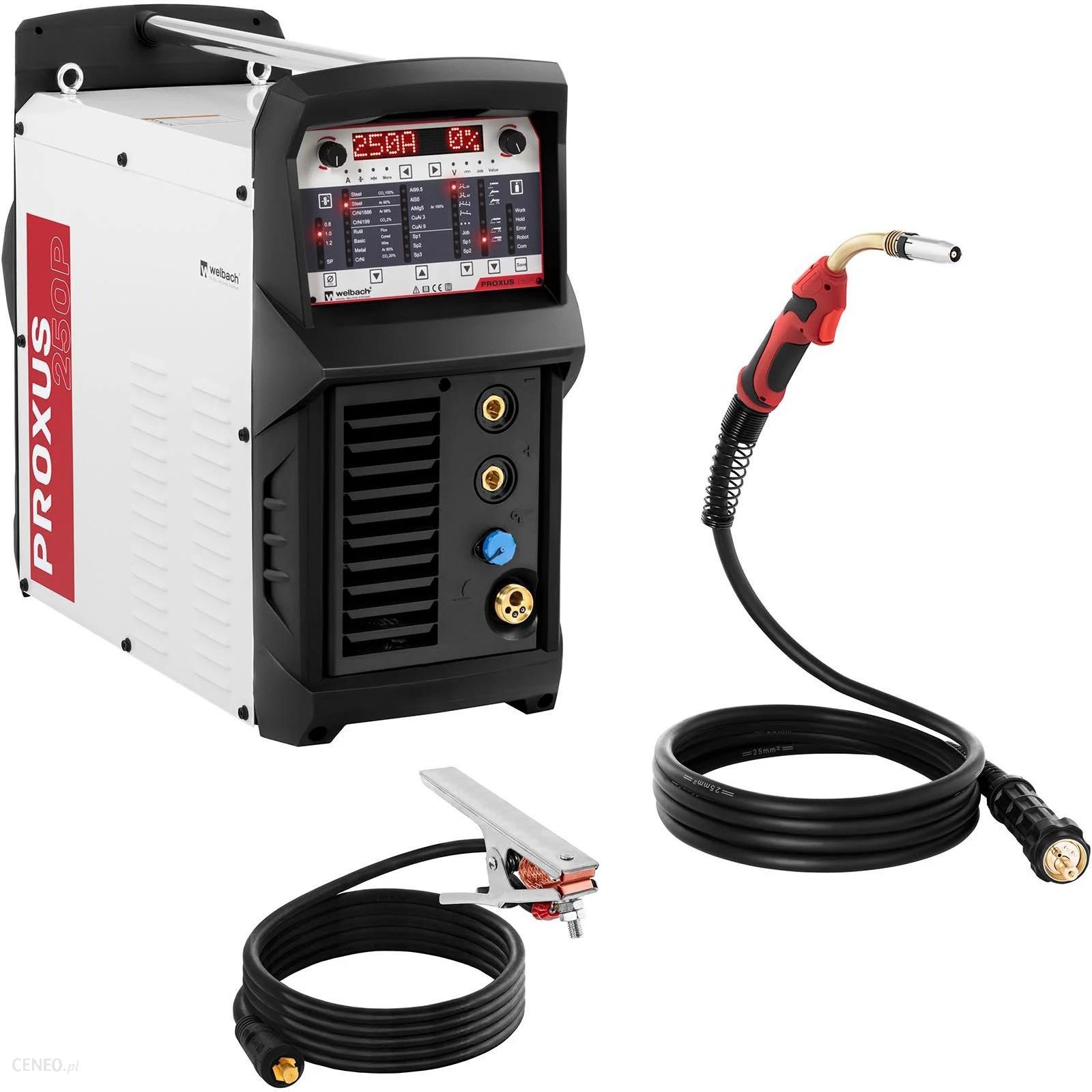 Najważniejsze cechy produktuMIG / MAG / MMA / FCAW / TIG LiftarcPrąd spawania 270 ASynergic PulsDrut o średnicy 0,6-1,2 mmHot Start / Anti-StickSpecyfikacja techniczna:Model – PROXUS 250PNr katalogowy – 10021242Stan artykułu – NowyNapięcie – 230 VMateriał obudowy – Stal Q235ADługość przewodu zasilającego – 2,5 mChłodzenie uchwytu – Chłodzenie gazemChłodzenie obudowy – Chłodzenie powietrzemMoc wyjściowa znamionowa – MIG: 6 kVA MMA: 7,1 kVAKlasa izolacji – FStopień ochrony – IP21Maksymalny prąd wejściowy – MIG: 54,3 A MMA: 60,9 AMaksymalna moc wejściowa – MIG: 12,5 kVA MMA: 14 kVAZnamionowy prąd wejściowy – MIG: 32,1 A MMA: 36 APrąd spawania przy cyklu pracy 100% – 160 ANapięcie biegu jałowego – 50 VWspółczynnik mocy – 0,7Zgodność z normami – EN60974-1Minimalny prąd spawania – MIG: 17 A MMA: 10 ADługość przewodu uziemiającego – 3 mDługość przewodu MMA – 3 mCykl pracy dla 40°C – 35%Maksymalny prąd spawania – MIG: 270 A MMA: 270 AMaksymalna średnica szpuli z drutem spawalniczym – 300 mmŚrednica drutu spawalniczego – 0,6 mm 0,8 mm 1 mm 1,2 mmWydajność – 85%Prędkość wysuwania drutu – 0,8 mm: 2-22 m/min 1 mm: 1,4-18,5 m/min 1,2 mm: 1,4-10,7 m/min2T / 4T – TakAnti Stick – TakARC-Force – NieChłodzenie wodą – NieDrut Flux – TakFunkcja MMA – TakHot Start – TakPodajnik drutu – TakElektrozawór gazu – TakDługość przewodu MIG/MAG – 3 mInstrukcja obsługi – TakWymiary (DxSxW) – 65 x 37 x 56 cmWaga – 37 kgKluczowe informacjeWydajność – prąd spawania 270 A dla MIG i MMA oraz 100% cykl pracy przy 160 ANowoczesność – zastosowanie technologii IGBT oraz możliwość wyboru trybu 2T i 4TCyfrowa obsługa – funkcja „Synergic Puls” zapewnia optymalne i automatyczne regulowanie parametrów spawaniaElastyczność – szpula drutu o średnicy 300 mm dla drutów 0,6-1,2 mmPrecyzja – spawanie elektrodą z funkcją Hot Start i Anti-StickSpawarka MIG/MAG 230 V welbachSpawarka MIG/MAG marki welbach to idealne urządzenie do łączenia metalowych elementów. Dzięki temu sprawdzi się w fabrykach, warsztatach, pracowniach, na liniach produkcyjnych czy budowach. Metoda spawania MIG/MAG zastosowana w modelu PROXUS 250P przeznaczona jest do spajania magnezu, miedzi i innych nieżelaznych metali oraz ich stopów.Spawarka inwertorowa MIG/MAG PROXUS 250P – opisWysoka wydajność to zasługa maksymalnego prądu spawania o wartości 270 A dla metody MIG/MAG. Wpływ na doskonałe efekty łączenia ma również cykl pracy 35%. Maszyna zasilana jest prądem o napięciu 230 V, co przekłada się na jej szerokie zastosowanie.Nowoczesna technologia IGBT sprawia, że spawarka MIG/MAG cechuje się lepszą efektywnością niż inne urządzenia. Sterowanie tranzystorami polowymi przebiega sprawniej, a napięcie przebicia jest większe. Poprawiona została też odporność sprzętu na zwarcia. Zastosowanie technologii inwertorowej przekłada się również na mniejszy rozmiar modelu PROXUS 250P.Funkcja 2T/4T znacząco ułatwia pracę. Tryb 2T pozwala spawać przez naciśnięcie i przytrzymanie włącznika na uchwycie spawalniczym. Idealnie sprawdza się on do wykonywanie punktowych spoin. Z kolei 4T polega na krótkim wciśnięciu włącznika, który rozpoczyna spawanie. Aby je zakończy, należy ponownie nacisnąć przycisk. Pozwoli to wygodnie wykonać długie połączenia.Zapłon Lift TIG, w który wyposażono spawarkę MIG/MAG polega na lekkim i szybkim zetknięciu się elektrody wolframowej z metalem, a następnie podniesieniu jej, aby podtrzymać łuk elektryczny. Tworzy się niewiele zanieczyszczeń, a wolfram pozostaje ostry. Do zalet tego rodzaju zapłonu należą:Synergiczna regulacja oznacza, że wystarczy ustawić jeden parametr (np. moc lub grubość materiału), aby pozostałe (prędkość podawania drutu lub prąd) automatycznie się dopasowały. Ponadto w komputerze urządzenia zapisano konfiguracje dla funkcji PULSE zapewniające najlepsze efekty pracy.Inwertortorowa spawarka MIG/MAG marki welbach daje wiele możliwości w łączeniu metalowych elementów. Doskonała wydajność, nowoczesna technologia oraz precyzyjna regulacja pozwolą tworzyć czyste, a zarazem trwałe spoiny. Nie czekaj i złóż zamówienie na model PROXUS 250P już dziś!FunkcjeIGBT – tranzystor bipolarny z izolowaną bramką (Insulated Gate Bipolar Transistor) jest elementem półprzewodnikowym, którego coraz częściej używa się w energoelektronice. Łączy zalety dwóch typów tranzystorów: łatwość sterowania tranzystorów polowych i wysokie napięcie przebicia oraz szybkość przełączania tranzystorów bipolarnych. Zaletę stanowi również odporność na zwarcia, ponieważ IGBT ogranicza przepływ prądu. IGBT są nowszą kontynuacją technologii MOSFET. CERTYFIKAT CE – urządzenia STAMOS zostały wykonane według surowych norm europejskich oraz przeszły badania pod kątem zgodności z CE oraz RoHS. Gwarantuje to długą żywotność oraz wysoką jakość urządzenia. UZIEMIENIE – z tyłu każdego urządzenia znajduje się śruba z oznaczeniem uziemienia. Przed uruchomieniem należy uziemić je za pomocą przewodu, którego przekrój nie może być mniejszy niż 6 mm². PRZYŁĄCZE ZACISKU MASOWEGO PRZYŁĄCZE PRZEWODU SPAWALNICZEGO MMA PRZYŁĄCZE UCHWYTU TIG PRZYŁĄCZE UCHWYTU MIG / MAG PULS – funkcja pozwala zmniejszyć ilość dostarczanego ciepła do materiału. Idealnie nadaje się do spawania cienkich arkuszy blach. W przypadku spawania MIG doskonale sprawdza się przy obróbce aluminium. 2T – funkcja oznacza rozpoczęcie pracy po naciśnięciu przycisku na uchwycie i jej zatrzymanie po zwolnieniu przycisku na uchwycie. 4T – naciśnięcie przycisku na uchwycie otwiera elektrozawór, następuje wstępny wypływ gazu i dochodzi do zajarzenia łuku elektrycznego. Po zapłonie prąd ma wartość prądu początkowego. W momencie puszczenia przycisku, wartość prądu wyjścio